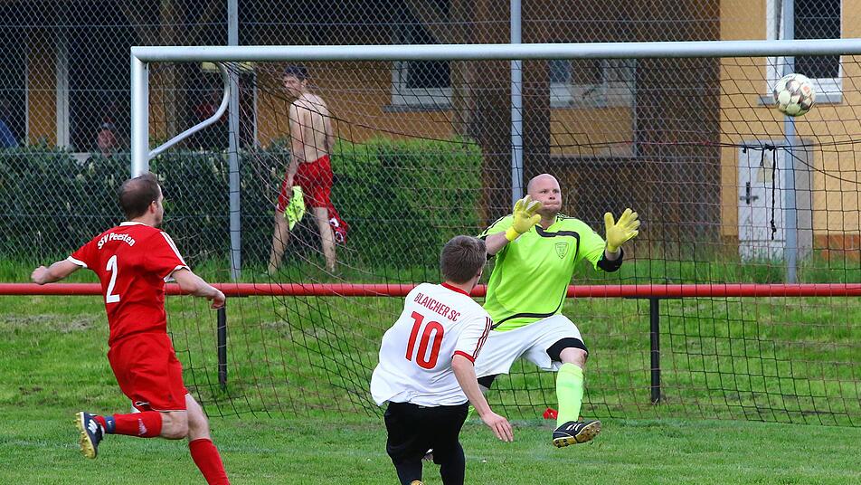 Der BSC Kulmbach hat es geschafft. Bereits am vorletzten Spieltag sicherten sich die Blaicher durch ein 3:0 gegen den SSV Peesten die Meisterschaft in der A-Klasse 6 Kulmbach und kehren damit in die Kreisklasse Kulmbach zurück. Um Platz 2 kämpfen am letzten Spieltag im direkten Duell der TSV Ködnitz und FC Kirchleus. BSC Kulmbach - SSV Peesten 3:0 (1:0) Der BSC war läuferisch überlegen und die ganze Partie über spielbestimmend. Kazar stellte mit einem Doppelpack früh die Weichen auf Sieg. Erst nutzte er einen Fehlpass von Gästetorhüter Braunersreuther, dann traf er mit einem satten Schuss. Dem eingewechselten Drack gelang nach feinem Querpass von Schmeinck der Endstand. Tore: 1:0 und 2:0 Kazar (4./62.), 3:0 Drack (78.). - Schiedsrichter: Rehm. - Zuschauer: 130.