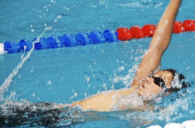 Am zweiten Wettkampftag standen die 50 Meter Rücken mit Beinen auf dem Programm. Hier durften die Schwimmer auf der gesamten Strecke ihre Arme nur nach vorne halten und nicht aktiv einsetzen.