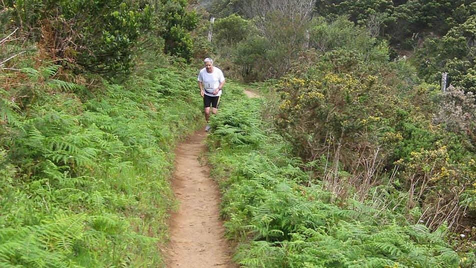 Die zweite Etappe führt durch den westlichen Teil der Insel mit berauschenden Tiefblicken zum Atlantik. 24,5 Kilometer sollen für die Läufer auf dem Plan stehen, für die Walker zwölf. Doch als meine GPS-Uhr schon 27 Kilometer anzeigt, ist vom Ziel weit und breit nichts zu sehen. Der Franzose Guy und sind jetzt irgendwo in einer wilden Schlucht unterwegs. Nach Kilometerpunkt 30 passieren wir ein Bergdorf, und nach 32,7 Kilometern endlich das Ziel! 2:59 Stunden werden für uns gestoppt, das bedeutet den gemeinsamen 2. Platz.