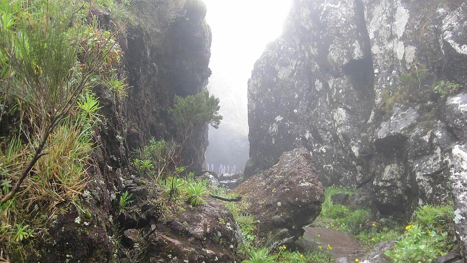 Über schwindelerregende Levadawegen im grünen Kessel von Madeira verlaufen die 15,3 Kilometer der vierten Etappe. Ursprüngliche, feuchte Lorbeerwälder mit dichtem Flechten-, Moos- und Farnbewuchs und unzählige Wasserfälle bilden eine faszinierende Landschaft.