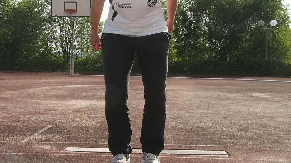 Mit dem Medizinball werfen Beim ersten Sprung bringt es Melanie Türk auf 1,68 Meter. "Ich habe im Vorfeld Kraftübungen gemacht und den Standweitsprung bei mir zuhause auf der Wiese geübt", sagt die junge Frau, die auch das Medizinball-Werfen ausprobiert. Dazu muss sie den zwei Kilo schweren Ball mindestens 6,50 Meter weit werfen. Melanie Türk schafft 8,70 Meter. Eine tolle Leistung - damit hätte sie sogar die Goldkriterien für ihre Altersklasse übertroffen.