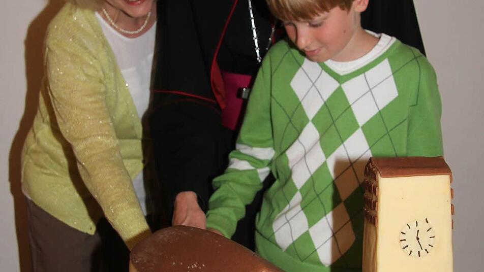 Und gemeinsam mit der Neudrossenfelder Mesnerin Dana Moj und mit David Götz (11), beide hatten ebenfalls Geburtstag, verteilte der Erzbischof die Torte an "seine Freunde".