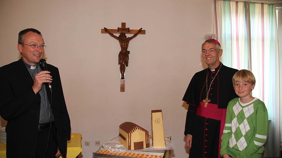 Das Kirchenjubiläum war auch ein besonderer Tag für ihn selbst. Denn Schick feierte seinen 64. Geburtstag. Als kleine Überraschung hatte die Kirchengemeinde für Ludwig Schick eine Torte in Kirchenform backen lassen.