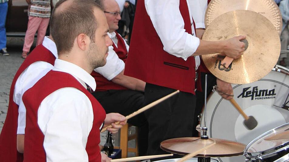 Einmal im Jahr wird der Marktplatz zu einer echten Piazza: Noch während die Stadtkapelle ihre Notenpulte aufbaute, schleppten die Kulmbacher Tische und Bänke herbei. In den umliegenden Lokalen füllten sich die Tische bis auf den letzten Platz.