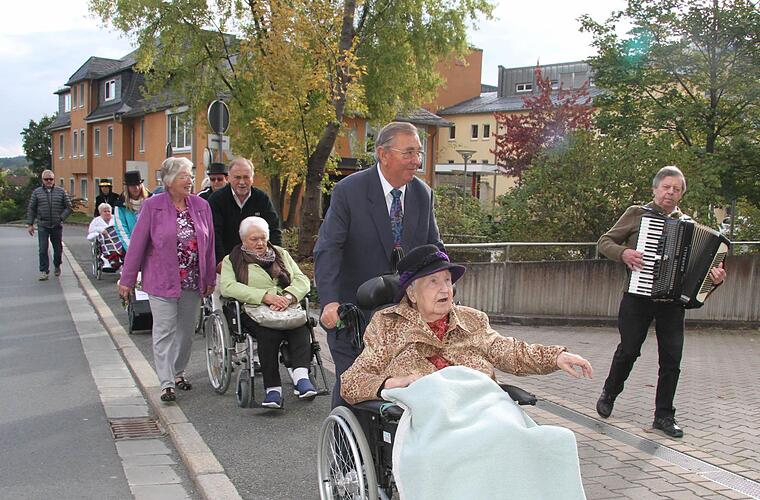 Das Wetter jedenfalls hielt in diesem Jahr. So konnten die Senioren vom Pflegeheim St. Marien bis zur Fachklinik marschieren oder sich im Rollstuhl chauffieren lassen.