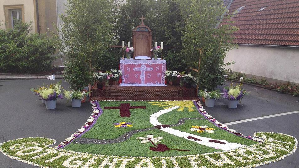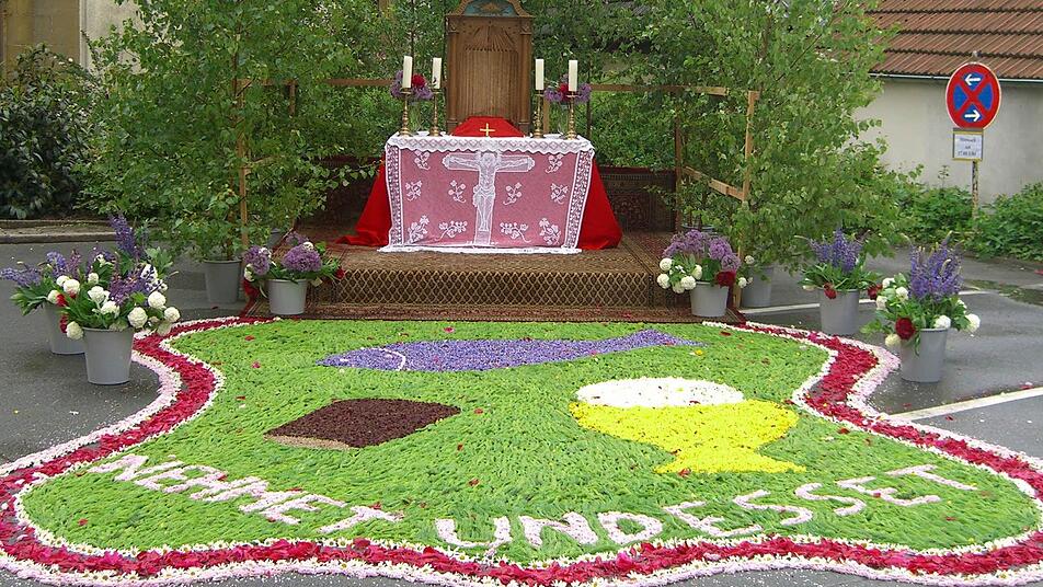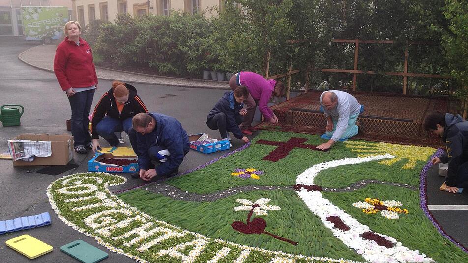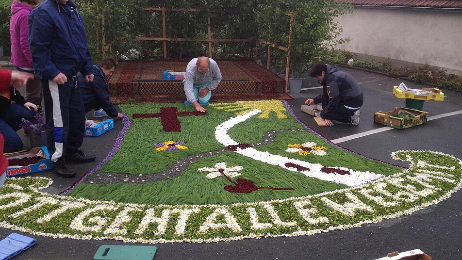Mit Blumen und Fichtenspitzen gestalteten Freiwillige früher auf dem Stadtsteinacher Kirchplatz einen prächtigen Teppich. Heuer fällt der alte Brauch aus.