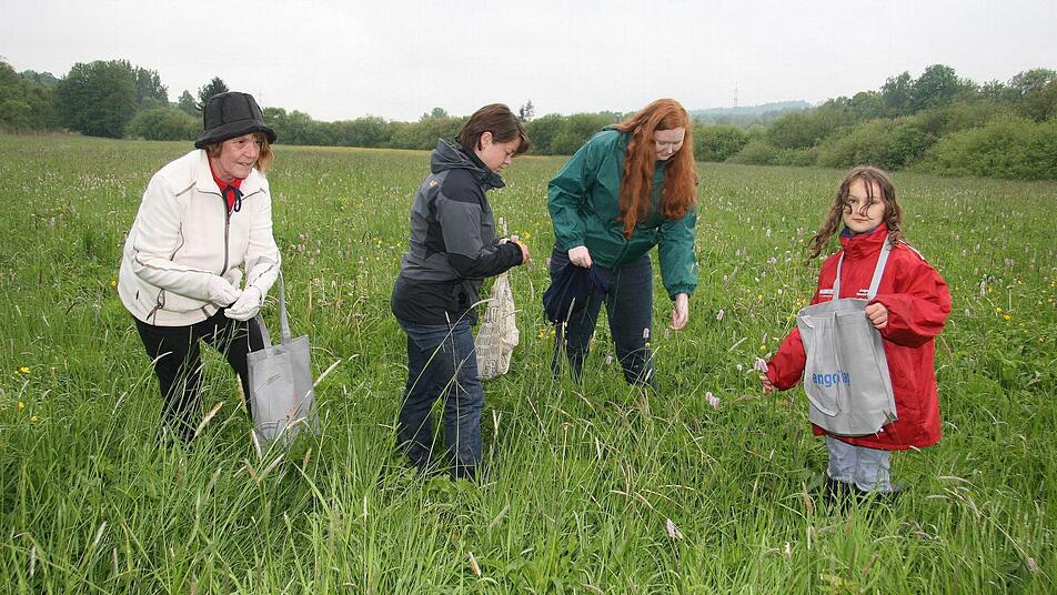 Für die "Leger" ist die Blume eine Herausforderung. Denn allein der Blütenstengel ist 1,50 Meter hoch und wird aus Tannen- und Fichtenspitzen gelegt. "Wir brauchen für den Teppich mindestens zwölf Obstkisten Blüten und fünf bis sechs mit Grünzeug", rechnet Titze vor. "Ich habe die Bilder im Kopf und mache mir immer Gedanken. Mein Mann muss sie dann zeichnen, denn malen kann ich überhaupt nicht", gibt sie zu. Auch über die Botschaft, die die Fronleichnamsteppiche beinhalten, denkt sie ausgiebig nach. Das Motto in diesem Jahr passt hervorragend zu den Wetterkapriolen.