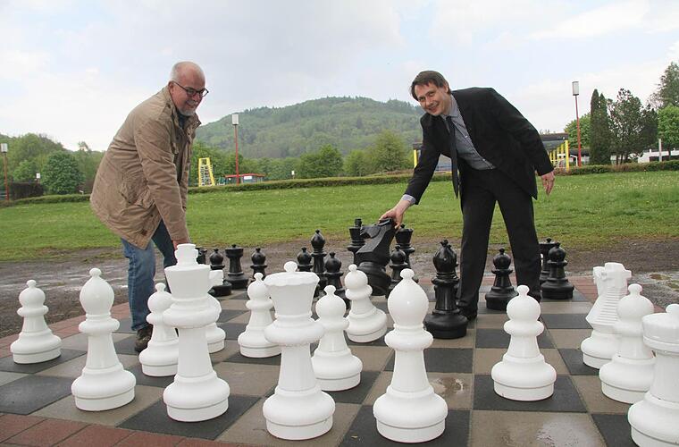 "Natürlich haben wir auch in diesem Jahr wieder kleine Neuerungen. Wir haben ein Schachfeld mit Großfiguren angelegt", sagt bei der Präsentation Bürgermeister Roland Wolfrum (SPD), und fordert Mitarbeiter Hans Kotschenreuther gleich zu einer Partie heraus. Tatsächlich wird die Freibadsaison 2014 etwas ganz Besonderes. Denn das Stadtsteinacher Freibad wird 40 Jahre alt.