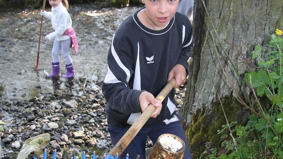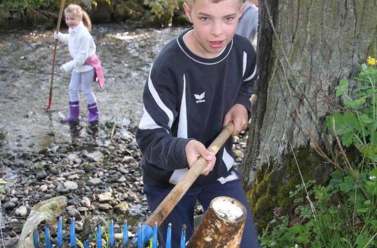 Bei der Bach- und Uferreinigungsaktion finden die Helfer jede Menge Müll - vom Ziegenskelett bis zum Leitpfosten. Einweg-Kaffeebecher sind eine richtige Landplage.
