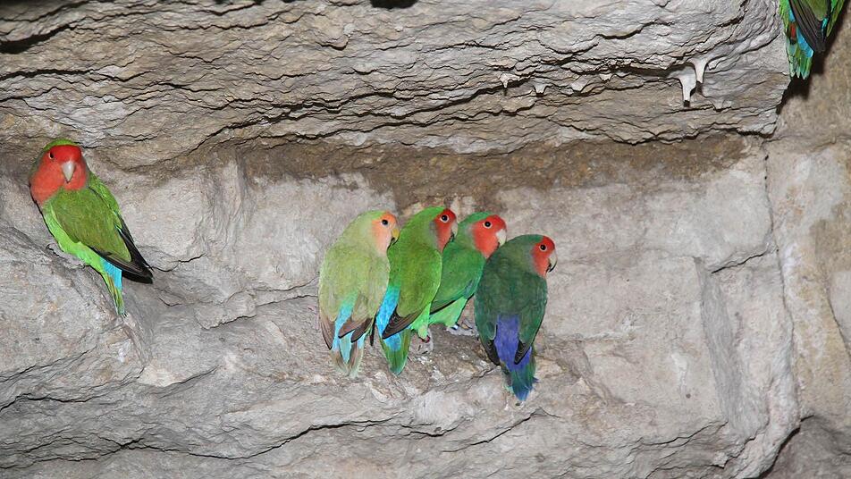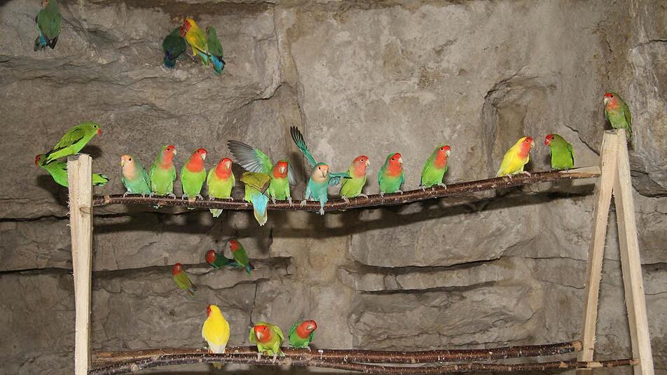Jeden Tag fängt Michael Kraus seine Unzertrennlichen mit einem Kescher. Er nimmt sie in die Hand und lernt den Vögeln, dass sie mit ihren kräftigen Papageienschnäbeln nicht zwicken dürfen. So werden die Vögel ruhig. Und vor allem lassen sie sich anschauen, ohne dass sie in Aufregung geraten. "Das ist die Vorbereitung für die Ausstellungen", erklärt Kraus. Nach den Ausstellungen werden die Vögel dann im Felsenkeller frei gelassen und können dort fliegen und sich in echten Felsen festkrallen.
