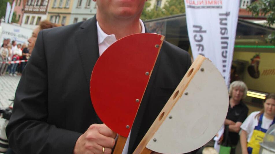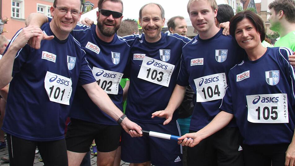 Kulmbach trat mit Michael Breitenfelder, Wolfram Brehm, Thorsten Grampp, Jörg Kunstmann und Heike Vogel an und mit einem Staffelstab in den Stadtfarben.