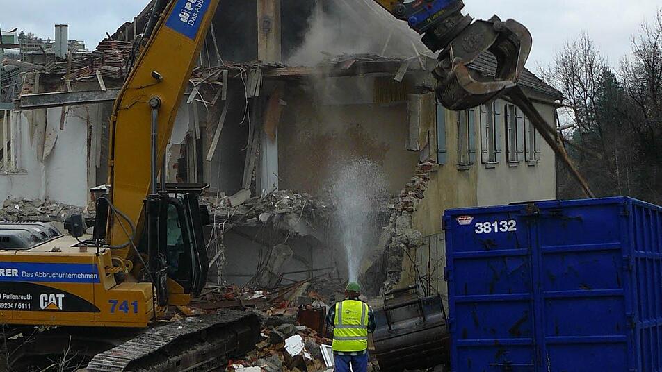 Schließlich nutzte die Abbruchfirma Plannerer aus Pullenreuth die Gunst der Straßensperrung und rückte dem ehemaligen Betriebsgebäude zu Leibe. Der Abrissbagger machte das alte Haus platt. Holz, Steine, Metall und der andere Bauschutt wurden säuberlich getrennt.