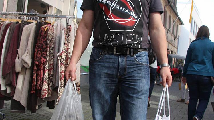 Erika Ohnemüller hat ihre beiden Enkel Tim und Nils dabei und schlendert vergnügt durch die Fußgängerzone. Ihr Mann ist schon mal voraus gelaufen, denn er will ja eigentlich "nur schnell" eine Jacke für sich kaufen. Es ist das alte Dilemma. Doch beim verkaufsoffenen Sonntag lockte das sonnige Herbstwetter die Massen in die Kulmbacher Innenstadt und versetzte die Kulmbacher in einen wahren Kaufrausch. Ob Einzelhandel oder Flohmarkt - gekauft wurde alles, was nicht niet- und nagelfest war. Michael Schott (42) aus Kasendorf schleppt zwei volle Tüten. "Ich war beim Flohmarkt und hab einiges gefunden, aber jetzt gehe ich noch zum Erntedank-Markt in die Mönchshof", bekam der Kasendorfer gar nicht genug.