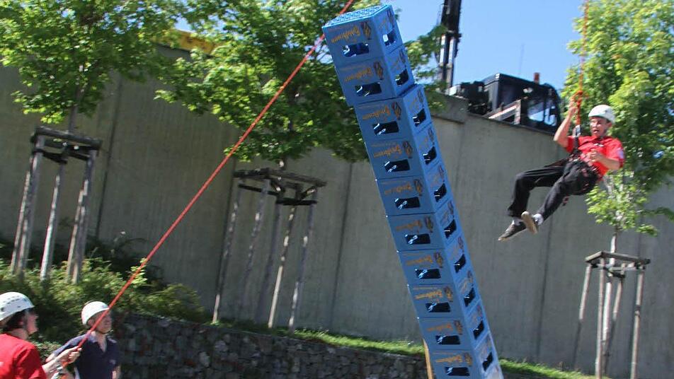 Viele Marktleugaster hatten vorher für den großen Flohmarkt den Dachboden ausgeräumt. Eine absolute Attraktion war das Bierkästen-Wettstapeln. "Da mache ich mit - ich möchte zehn schaffen", erkärte Peller Gabor, hatte aber im Vorfeld so seine Zweifel. Doch er machte seine Sache gut. Beim 15. Kasten allerdings kippte der Stapel um.