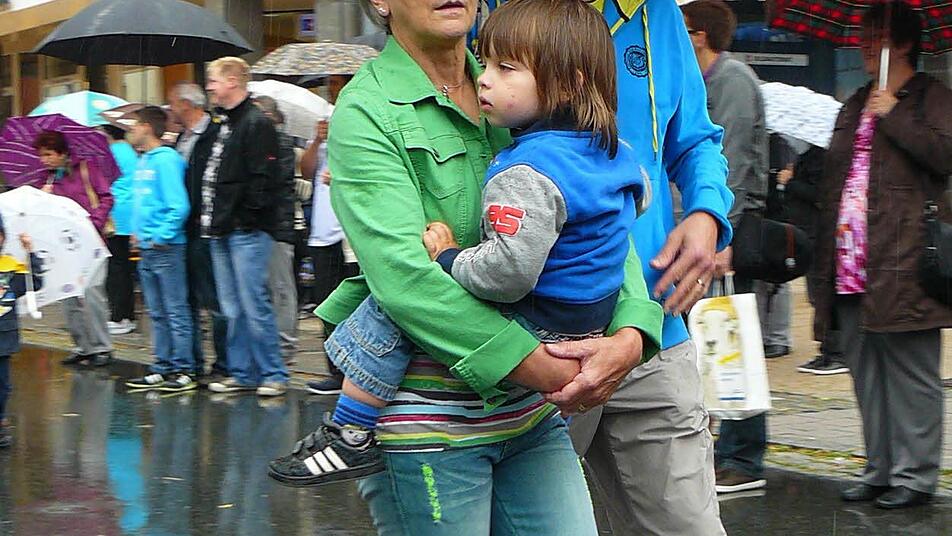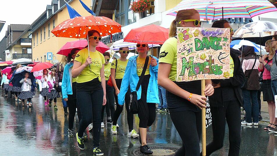 Nach den Willkommensgrüßen von Bürgermeister Norbert Volk tanzten die Kindergartenkleinen bei leichtem Regen auf der Showbühne. Die RSC-Chaos Angels mussten sich eine Stunde später wegen strömendem Regen aber über 30 Minuten gedulden, bis sie ihre Darbietung präsentieren konnten.