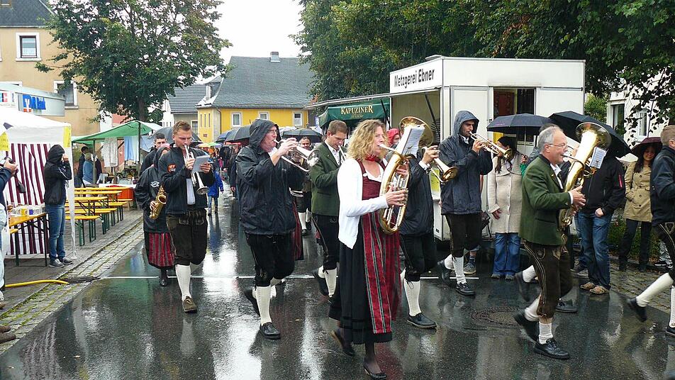 Der Herrgott war dem 26. Straßenfest der Oberlandgemeinde Marktleugast am gestrigen Sonntag nicht hold. War das Wetter am Vormittag bei 18 Grad noch angenehm, so öffnete der Himmel kurz vor dem um 13 Uhr anstehenden Festzug seine Schleusen.