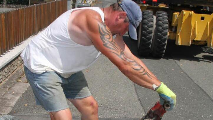 Und auch Vorarbeiter Thomas Schüßler half mit und packte trotz der heißen Temperaturen kräftig mit an.