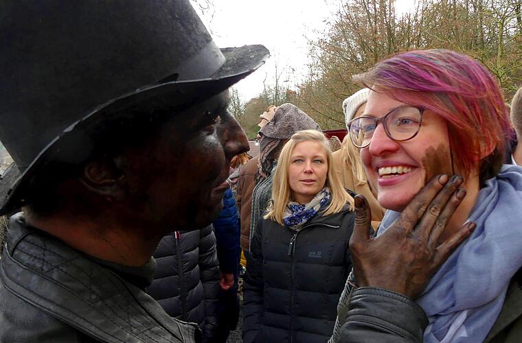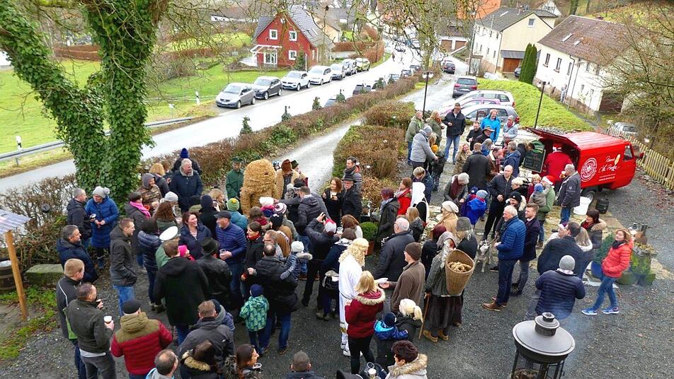 Mit etwas Verspätung stürmt die Truppe gegen halb elf Richtung Oberes Dorf los, klingelt an jedem Haus, wünscht überall "schöne Weihnachten" und "Glück und Segen für das neue Jahr". Zum Dank gibt's mal zu essen, mal zu trinken, manchmal auch beides. Spenden, die sie zusätzlich erhalten, geben die jungen Männer anschließend für soziale Zwecke weiter.