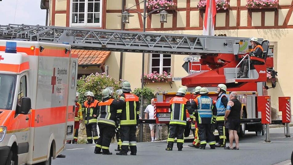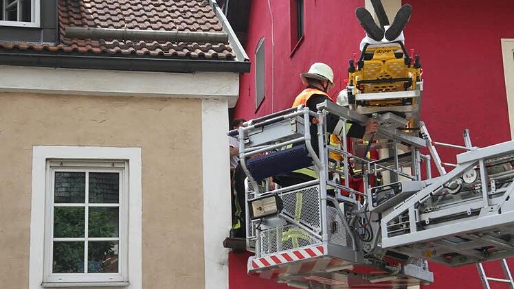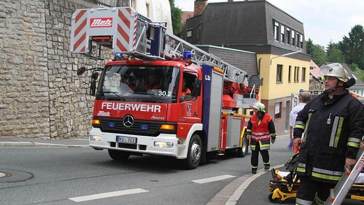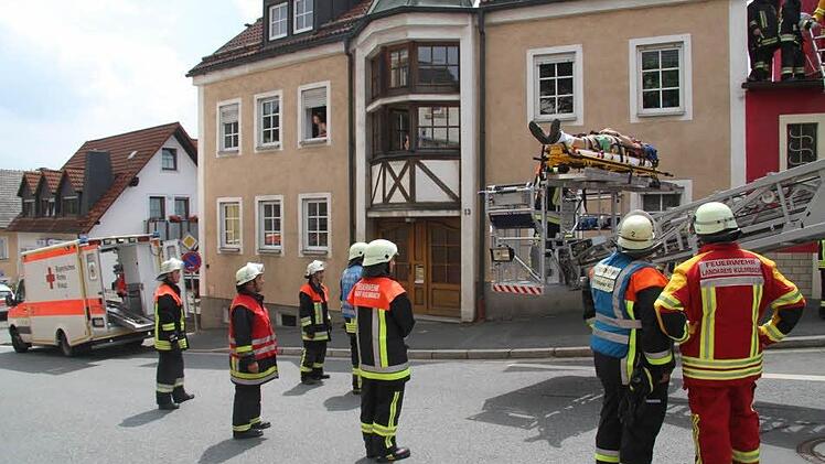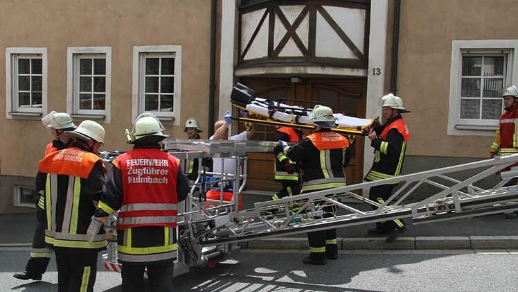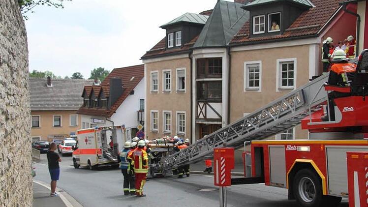 Der Stadtsteinacher BRK-Rettungsdienst versorgte den Verletzten noch auf dem Dach. Geborgen wurde der 50-Jährige dann mit der Drehleiter, die eigens bei der Kulmbacher Feuerwehr angefordert wurde.