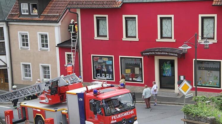 Augenzeugen beobachteten, dass der Arbeiter rund zwei Meter in die Tiefe fiel und auf einem Zwischendach zwischen dem Haus der Freikirchlichen Gemeinde und dem Nachbaranwesen liegen blieb.