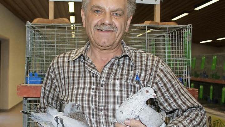 "Die Texaner sind sehr zahme Tauben. Und sie sind mit 800 bis 950 Gramm sehr schwer", erklärt der Züchter. "Wenn man mit dem Futterbecher rasselt, kommen sie gleich wieder her."