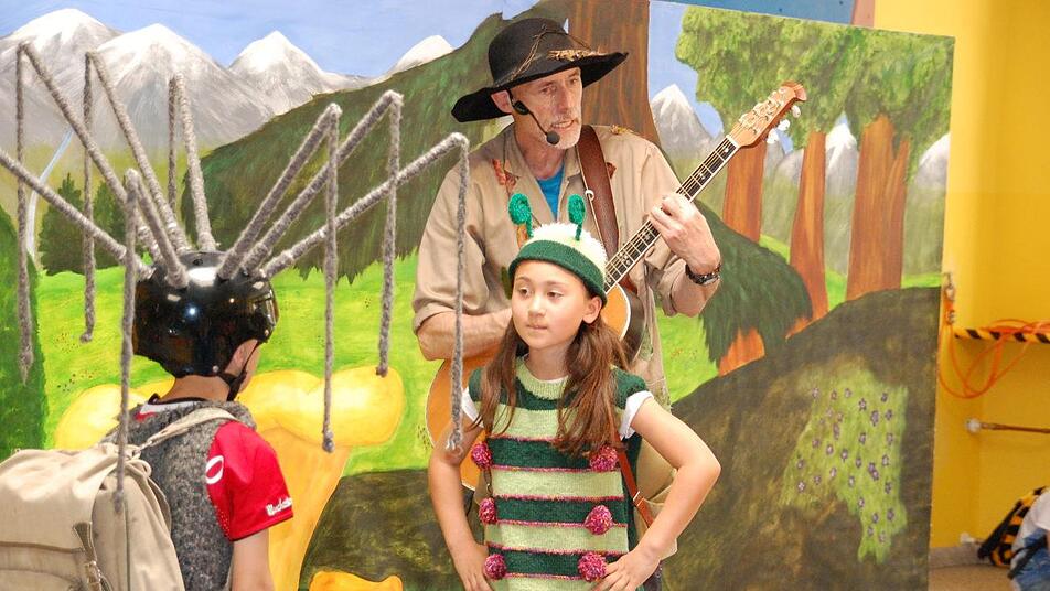 Fünf Kinder durften im Stück mitspielen und in die Rollen der verschiedenen Insekten schlüpfen. Die Zuschauer applaudierten, machten die passenden Hintergrundgeräusche und sangen mit. Hierfür wurden eigens zugesandte Lieder bereits im Vorfeld im Unterricht mit den Kindern eingeübt.