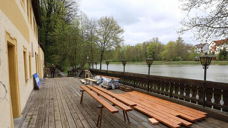 Außen stehen groß die Hinweise "Wegen Umbau und Renovierung vorübergehend geschlossen". Innen ist Großbaustelle in der "Schlossbräu am See". Praktisch alles wird erneuert: Wandverkleidungen, Böden, Toiletten, Bestuhlung, Küche. Dort, wo noch vor einem halben Jahr eine Kommunbräu geplant war, zieht jetzt ein Grieche ein - mit einem ganz besonderen Konzept. Pächter Wassili Pentas will eine "bunte Speisekarte anbieten: Fränkisch, griechisch und Pizza".