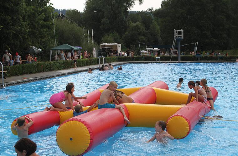 Die Wasserwacht hatte die große Krake zu Wasser gelassen. Bei Temperaturen von mehr als 30 Grad war das ein Mega-Spaß. Selbst als die ersten Regentropfen vom Himmel fielen, blieben die Kinder und Jugendlichen noch im Wasser.