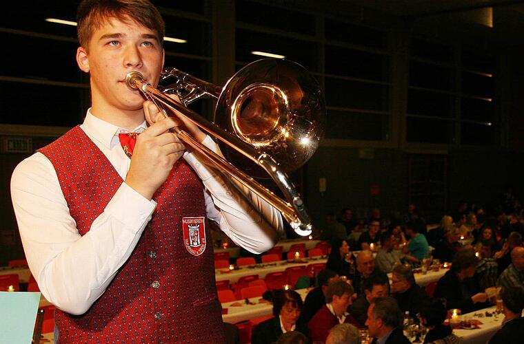 Doch krankheitsbedingt fiel ein Posaunist aus - und kurzerhand half Tobias Hahn aus. Ehrensache, denn schließlich unterrichtet der 17-Jährige ja auch schon beim Musikverein.