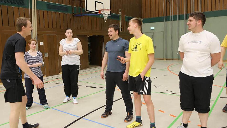 In der Sporthalle Weiher geht es Dienstagabend locker zu. Ein buntes Häuflein von 20 Mann, darunter einige Frauen, wuselt auf dem Kunststoffboden rum. Statt ihrer Uniform haben die Feuerwehrleute und THW-Helfer Sportkleidung angelegt. Die Rettungskräfte tun beim Dienstsport etwas für ihre Fitness - dienstlich schwitzen sozusagen, damit ihnen beim Einsatz nicht die Luft ausgeht.