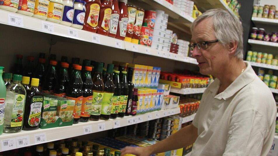In den Regalen türmen sich Konserven und Päckchen mit Nudeln, Keksen, Süßigkeiten. Obst in Dosen, Hygieneartikeln und Getränken - alles steht fein säuberlich da. Die meisten Dinge sind auch schon ordentlich ausgezeichnet.