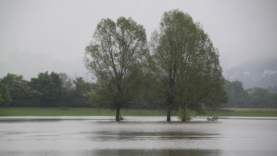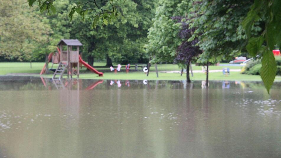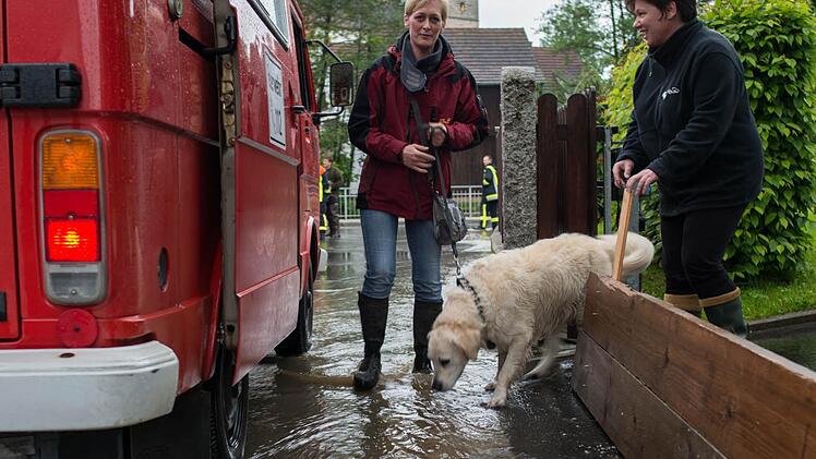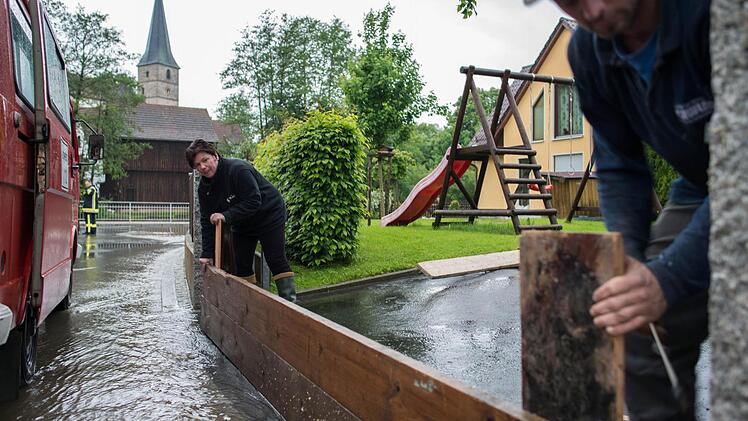 Auf einige trockene Stunden während der Nacht folgte am Samstagmorgen in Himmelkron wieder der Regen. Die Folge: Die Hochwassserlage in der Region bleibt angespannt. Immer noch sind Straßen überflutet.