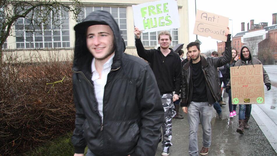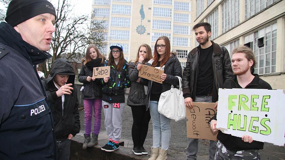 Bundespolizei und verstärkte Polizeikontrollen am ZOB wegen der Gewalt-Eskalation in letzter Zeit - das passt vielen Kulmbacher Jugendlichen nicht. Am Samstag organisierten sie eine Spontan-Aktion und umarmten Passanten - als Friedensangebot.
