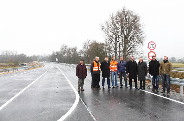 Oberbürgermeister Henry Schramm (CSU) und Siegfried Beck vom Staatlichen Bauamt räumten höchstpersönlich die Sperrschilder weg, damit die ersten Autos die Strecke passieren konnten.