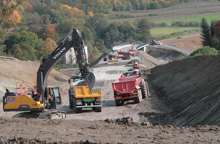 Inzwischen ist schon relativ gut zu erkennen, wie die neue B 303 einmal verlaufen wird, wie die Brücken angebunden werden, die im vergangenen Jahr noch verloren und einsam in der Gegend standen. "Insgesamt gibt es sechs Brücken", erläutert Beck. Drei davon seien schon vor dem eigentlichen Streckenbau errichtet worden, weil sie im Gegensatz zu den anderen drei Bauwerken nicht in den Einschnitt der künftigen Bundesstraße eingebaut werden mussten.