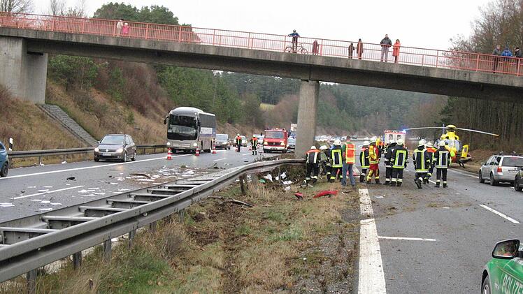Wie die Polizei bestätigte, prallte der 26-Jährige mit seinem Pkw vermutlich aufgrund hoher Geschwindigkeit zunächst gegen die Mittlellleitplanke, wurde von dort zurückgeschleudert und kam an der Böschung zum Stehen. Umherfliegende Trümmerteile beschädigten einen Pkw auf der Gegenfahrbahn, weitere Personen kamen jedoch nicht zu Schaden. Das 26-jährige Unfallopfer wurde mit Verdacht auf Schädelbruch in ein Krankenhaus geflogen und schwebt in Lebensgefahr.