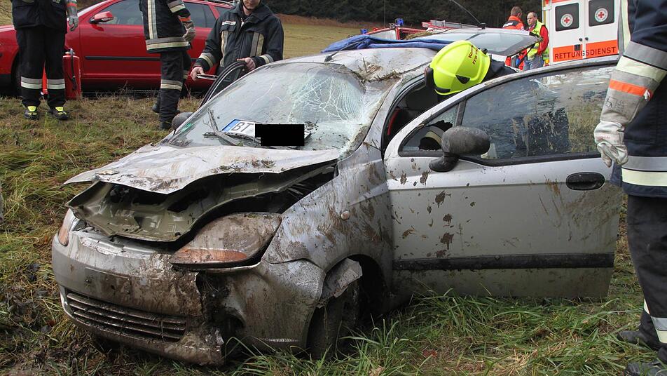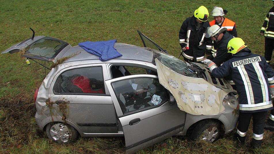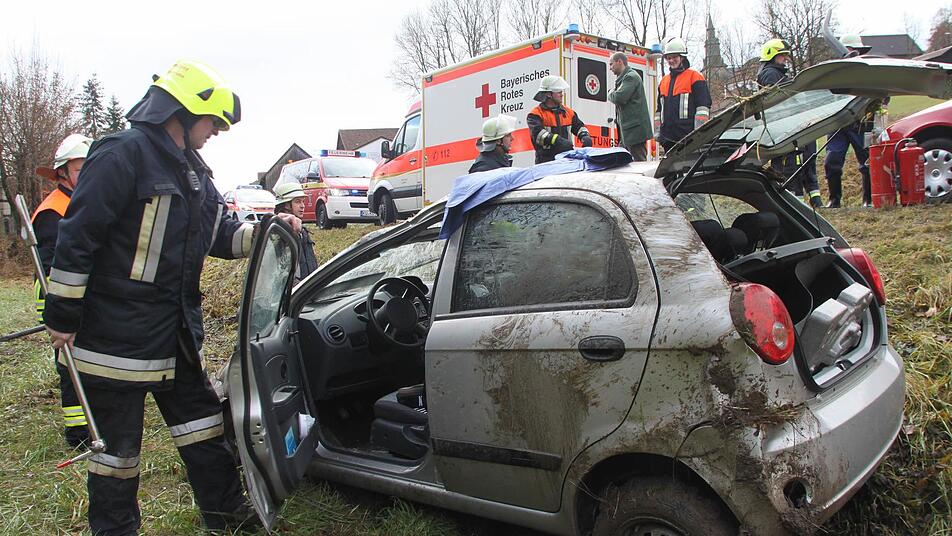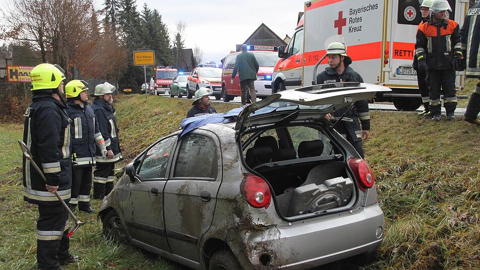 Unfall kurz nach 11 Uhr bei Kirchleus: Ein mit vier Personen besetzter Kleinwagen war von der Straße abgekommen.
