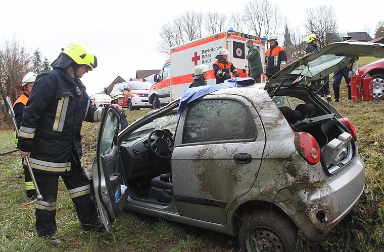 Unachtsamkeit war möglicherweise die Ursache, die zu dem Unfall führte. Der Kleinwagen mit Bayreuther Kennzeichen war aus Richtung Kulmbach kommend kurz nach Ortsende Kirchleus nach rechts von der Straße abgekommen, eine Böschung hinunter gerutscht und hatte sich dann beim Aufprall auf der Wiese wohl um die eigene Achse gedreht. Entgegen der Fahrtrichtung kam der Wagen zum Stehen.