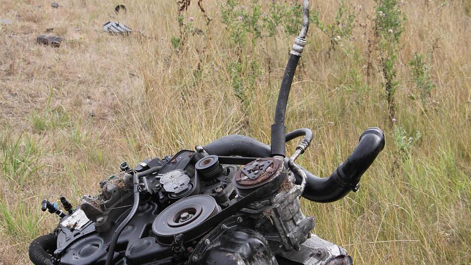 Der herausgerissene Motorblock, im Hintergrund das Taxi. Foto: Jürgen Gärtner