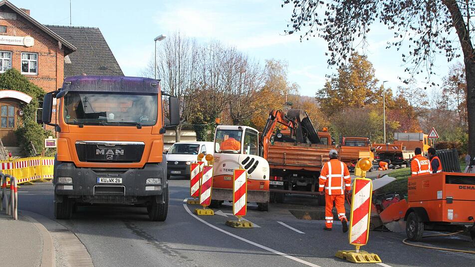 "In der ersten Bauphase haben wir drei Löcher auf einmal aufgemacht, in den folgenden Abschnitten werden immer nur zwei Stellen am Stück erledigt. Wir wollen die Beeinträchtigung des Verkehrs und der Anwohner so gering wie möglich halten", bittet der Untersteinacher Bürgermeister Volker Schmiechen um Verständnis.