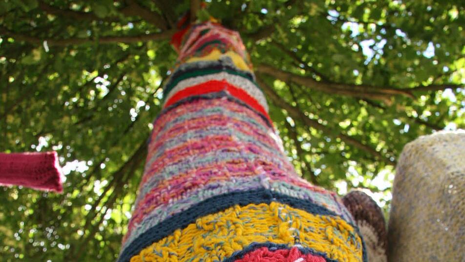 Marianne Schneider war dabei und Doris Popp. Die Seniorin unter den Strickerinnen ist Ilse Degelmann, die direkt an der Kreuzung wohnt und immer einen Blick auf das Kunstwerk hat. Denn nicht nur das Fahrrad wurde umstrickt, sondern auch ein kompletter Baum. "Ich habe fast meine ganzen Wollreste aufgebraucht", verrät die 74-Jährige. Sie findet die Idee, Gegenstände im öffentlichen Raum einzustricken, kein bisschen schräg. "Das sieht doch gut aus. Ich habe sogar Muster reingestrickt", lacht Ilse Degelmann und erfreut sich immer an diesem Kunstwerk der besonderen Art.