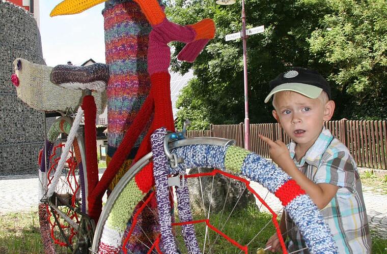 Das Fahrrad, das mit einer Kette festgehängt ist, wurde von Heinz Popp gestiftet. "Wir hoffen natürlich, dass unsere Stricksachen lange schön bleiben", sagt Margit Ludwig. Und am Wochenende feiern alle Strickerinnen ihr privates Eckenfest. "Das ist schon Tradition."