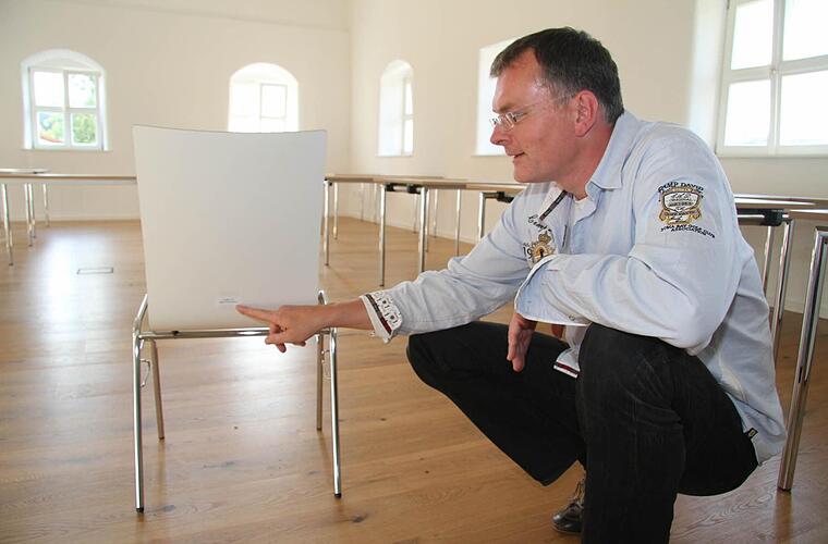 Und dafür hat man sich in Untersteinach etwas Pfiffiges ausgedacht. Jeder kann sich in das Kantoratsgebäude "einkaufen". Für fünf Euro gibt es ein Leuchtmittel, für zehn Euro gibt es ein Besteck - für 20 Euro ein Geschirr-Set. Und für etwas spendenfreudigere Untersteinacher oder Firmen gibt es auch "größere" Spendenanlagen: Eine Türe ist für 2500 Euro zu haben. Auf Wunsch kann die gespendete Position dann mit einem Namensschild versehen werden - bei den größeren Teilen zumindest.
