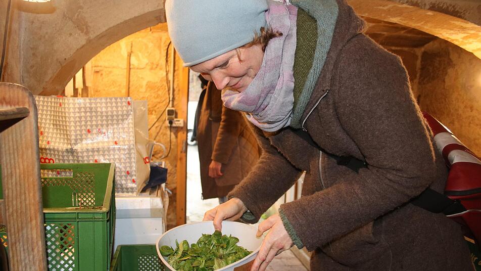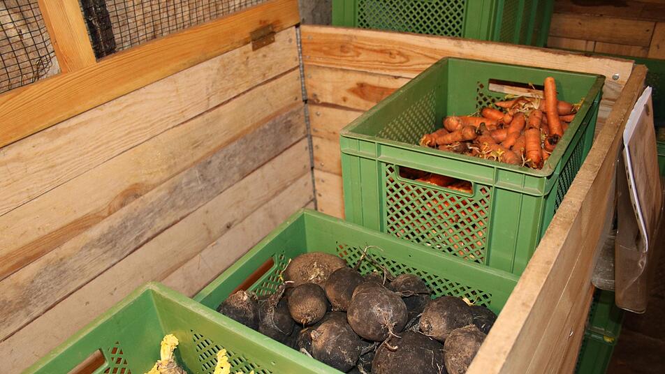 Silvia Schott holt am Freitagnachmittag am Patersberghof ihren wöchentlichen Anteil ab. Das Gemüse und die Milchprodukte sind in einem kühlen Kellerraum gelagert. Mit einer Waage kann jeder seinen Anteil auf Vertrauensbasis abwiegen. Silvia Schott ist begeistert vom frischen Gemüse, besonders angetan hat es ihr aber der schmackhafte Quark, der direkt in der ansässigen Molkerei hergestellt wird. "Irgendwann muss der Verbraucher wieder näher an den Erzeuger heran", ist auch sie überzeugt. Die Kulmbacherin hatte schon seit Jahren auf ein Projekt wie die Solawi gehofft, das eine solche Nähe ermögliche.