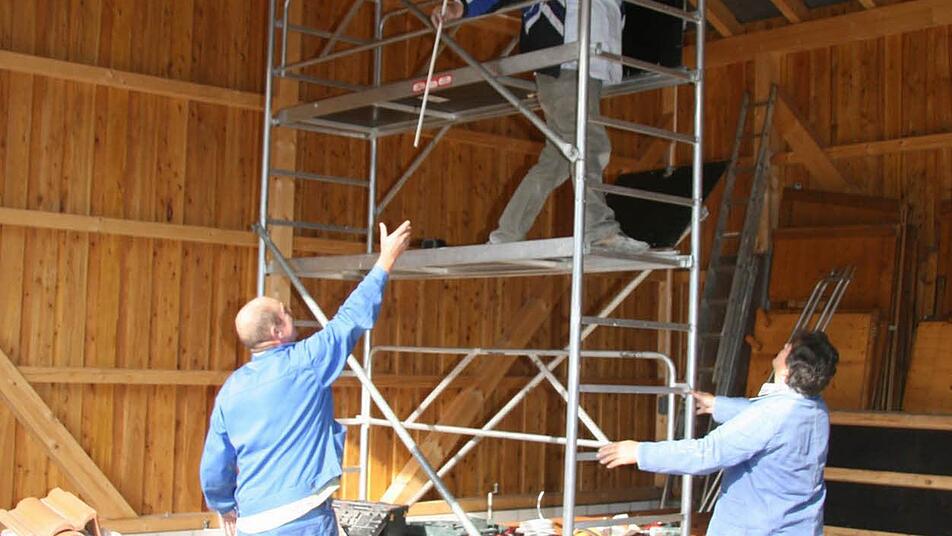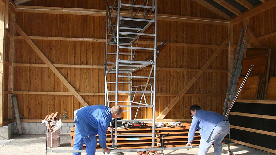 Viele Meter Kabel nötig Derzeit ist die Elektro-Truppe am Werkeln. Capo der Truppe ist Reinhard Groß, 56 Jahre alt und gelernter Elektriker. Zwölf Steckdosen möchte er in der Scheune installieren. Dazu müssen Dutzende Meter Kabel verlegt werden. In der Scheune werden außerdem Leuchtstofflampen installiert und eine Kraftsteckdose. "Wir müssen hier vielleicht auch mal was schweißen. Das ist absolut praktisch. Denn wir wollen ja auch die Halle für Reparaturen benutzen", erklärt Groß.