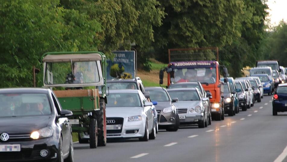 Verkehrschaos in Kulmbach: Die Sperrung der Theodor-Heuss-Allee sorgt für einen Riesenstau an der Schauer-Kreuzung. Von Melkendorf bis Kulmbach braucht man bis zu einer Stunde.