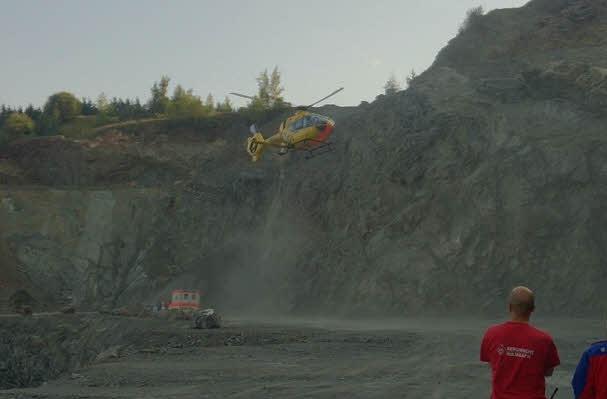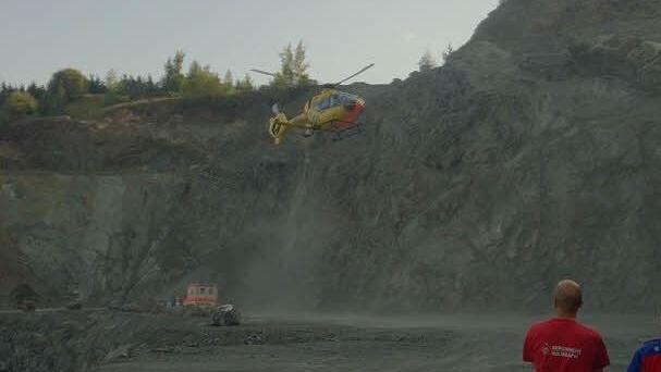 Der 33 Jahre alte Arbeiter war wohl an einem Bohrloch beschäftigt, hat dann offensichtlich das Gleichgewicht verloren und ist daraufhin in die Tiefe gestürzt. Auf der untersten Stufe des Steinbruchs kam er zum Liegen. Der Mann wurde schwer verletzt, aber er war noch bei Bewusstsein und konnte auch noch selbst den Notruf absetzen.
