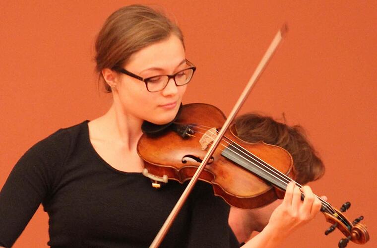 Doch nicht nur Mikhail Pochekin begeisterte bei dem Auftritt im Schloss Thurnau, auch die anderen Violinisten aus aller Herren Länder konnten sich hören lassen. Lilian Heere und Olga Carboni hatten sich für ihren Auftritt das Allegro aperto aus dem bekannten Violinkonzert in A-Dur von Wolfgang Amadeus Mozart ausgesucht. Lilian Heere interpretierte das Werk in beeindruckend unaufgeregter, fröhlich-unbekümmerter Weise, frisch und überzeugend. Olga Carboni aus Kiew dagegen brachte in das Werk ihren eigenen künstlerischen Stil ein. Mozarts Konzert bekam deutlich mehr Dramatik.