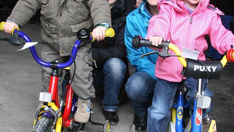 Auch die Radneulinge Lea und Max Schramm sind fündig geworden. Sie kamen mit Mama Lisa und Patin Anja Kodisch.