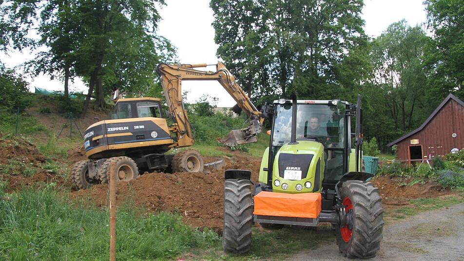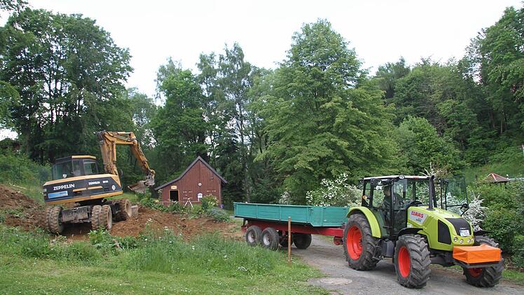 Das Gelände um die Frankenwaldhütte in Wartenfels ist kaum wiederzuerkennen. Nachdem das Wäldchen in Hanglage abgeholzt wurde, hat der Frankenwaldverein mit schwerem Gerät das Gelände begradigt. "Wir haben alles in Eigenleistung gemacht. Mindestens vierzig Lastwagen- und Kipperladungen Erde haben wir weggeschafft", erklärt Obmann André Hümmer.